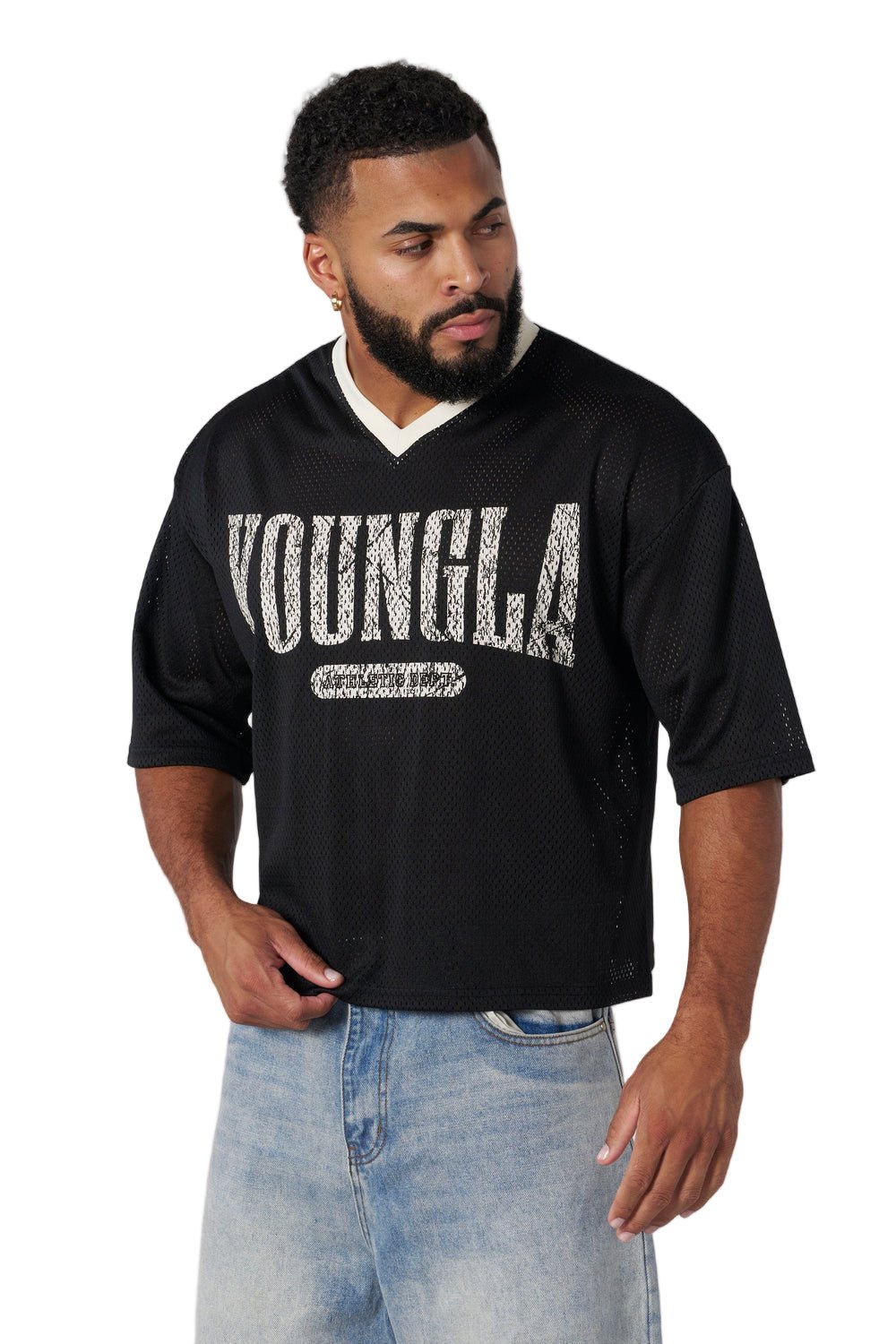 4187 - Varsity Football Cropped Jersey Black