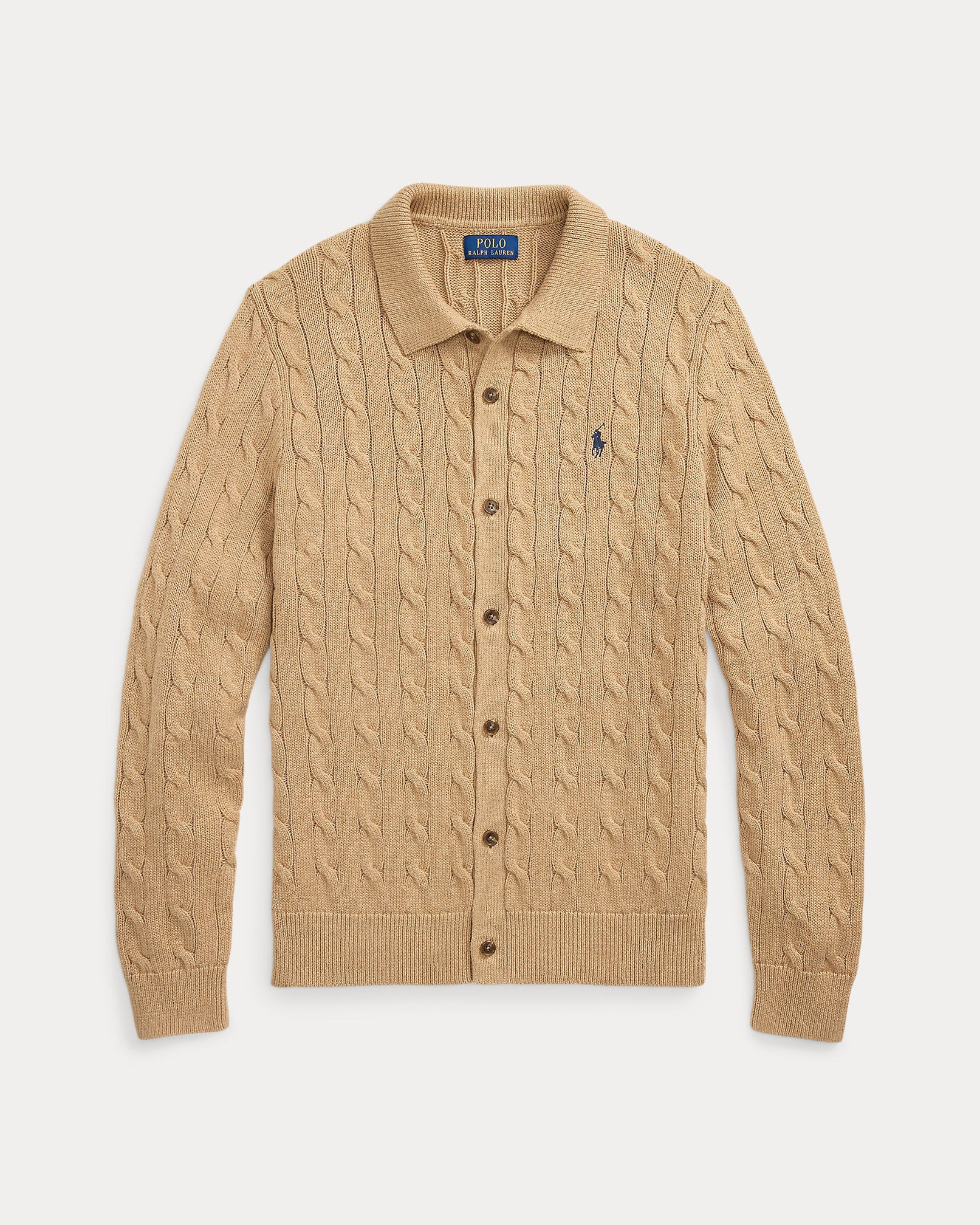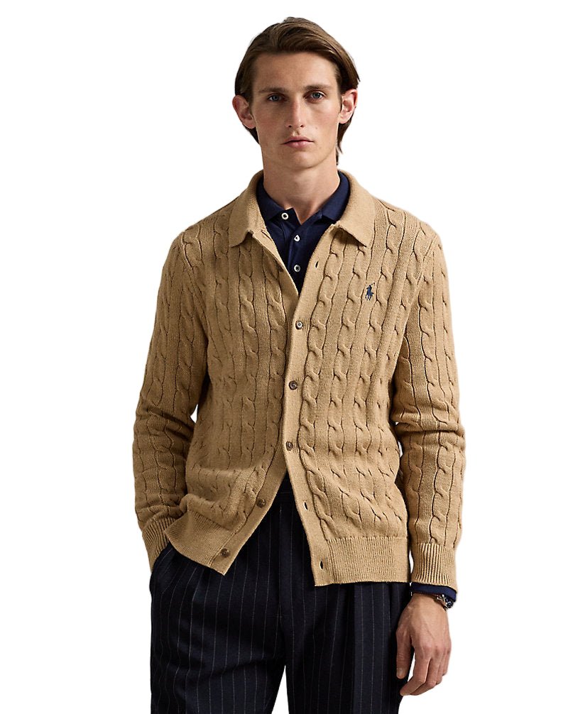 Cable - Knit Cotton Cardigan Camel Melange - Unmatched Kicks - ralph lauren
