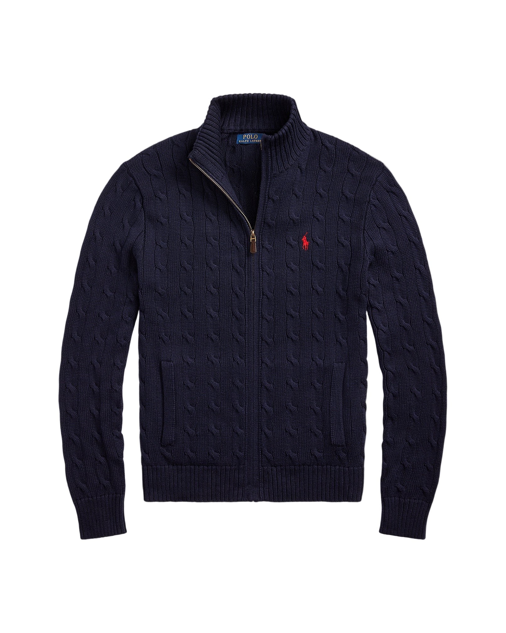 Cable-Knit Cotton Full-Zip Sweater Hunter Navy