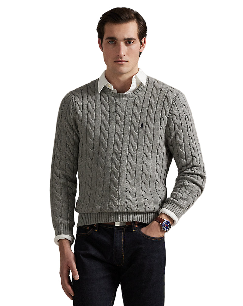 Cable-Knit Cotton Sweater Fawn Grey Heather