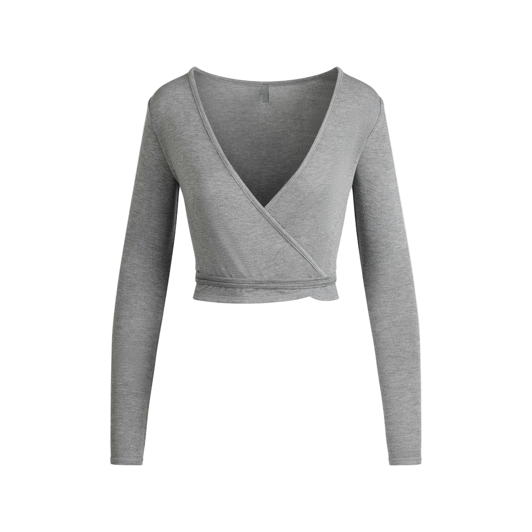 LONG SLEEVE WRAP TOP Dark Heather Grey